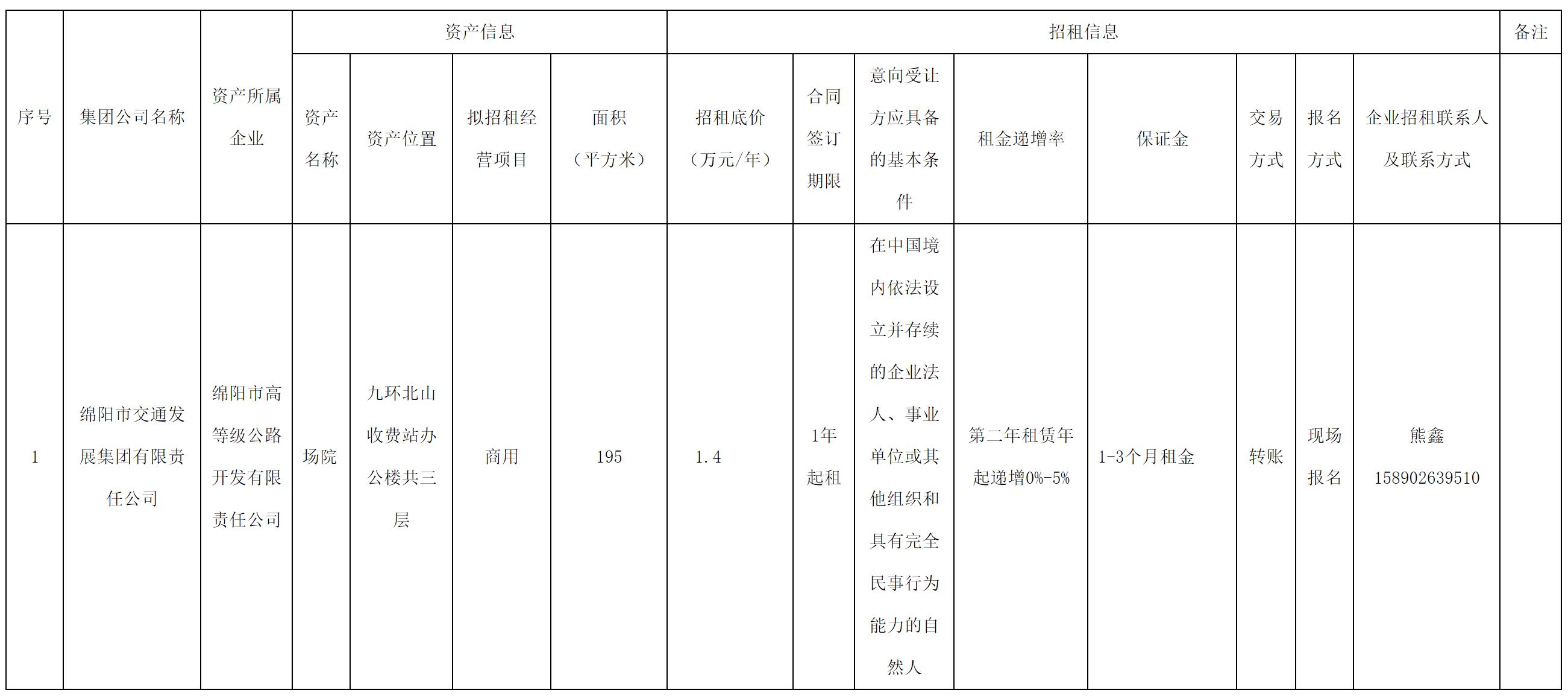 绵阳市高等级公路开发有限责任公司现有部分空置场院对外公开招租,欢迎有意向的单位、个体工商户、自然人报名竞价,现将相关事宜公告如下: