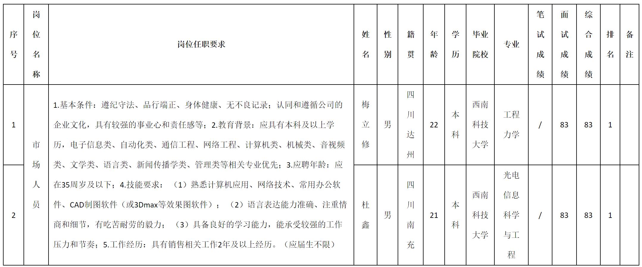 根据四川湖山电器股份有限公司发布的招聘公告及招聘相关规定,现将测试成绩予以公示。