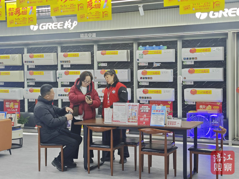 门店运营经理何锋介绍,在国家补贴基础上,商场联合厂家推出“厂企双补”,补贴力度达10%—15%,与国家补贴叠加后整体补贴力度最高达25%。“1月23日至25日‘双店同庆’期间,消费者提前预存10元可抵100元,通过抖音团购最高可再省1000元。”何锋补充道,年货节期间还将开展抽奖等活动,通过多轮福利组合让消费者享受更多实惠。
