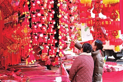 摘要:1月17日,恰逢周末,记者在绵阳城区小商品批发市场和大型商超看到,随着农历马年的脚步越来越近,寓意吉祥的福字、火红的灯笼、喜庆的春联,还有造型各异的“马元素”摆件等各类新年饰品琳琅满目,喜气又好看,吸引了不少市民选购。