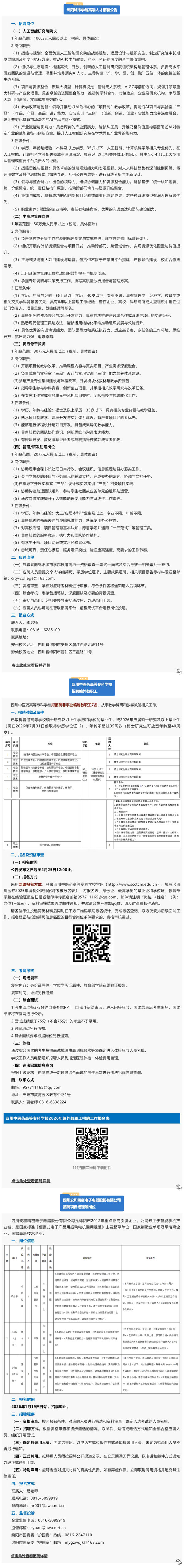 每日送岗|高端人才、管理岗位、教职工…绵阳这些单位正在招聘