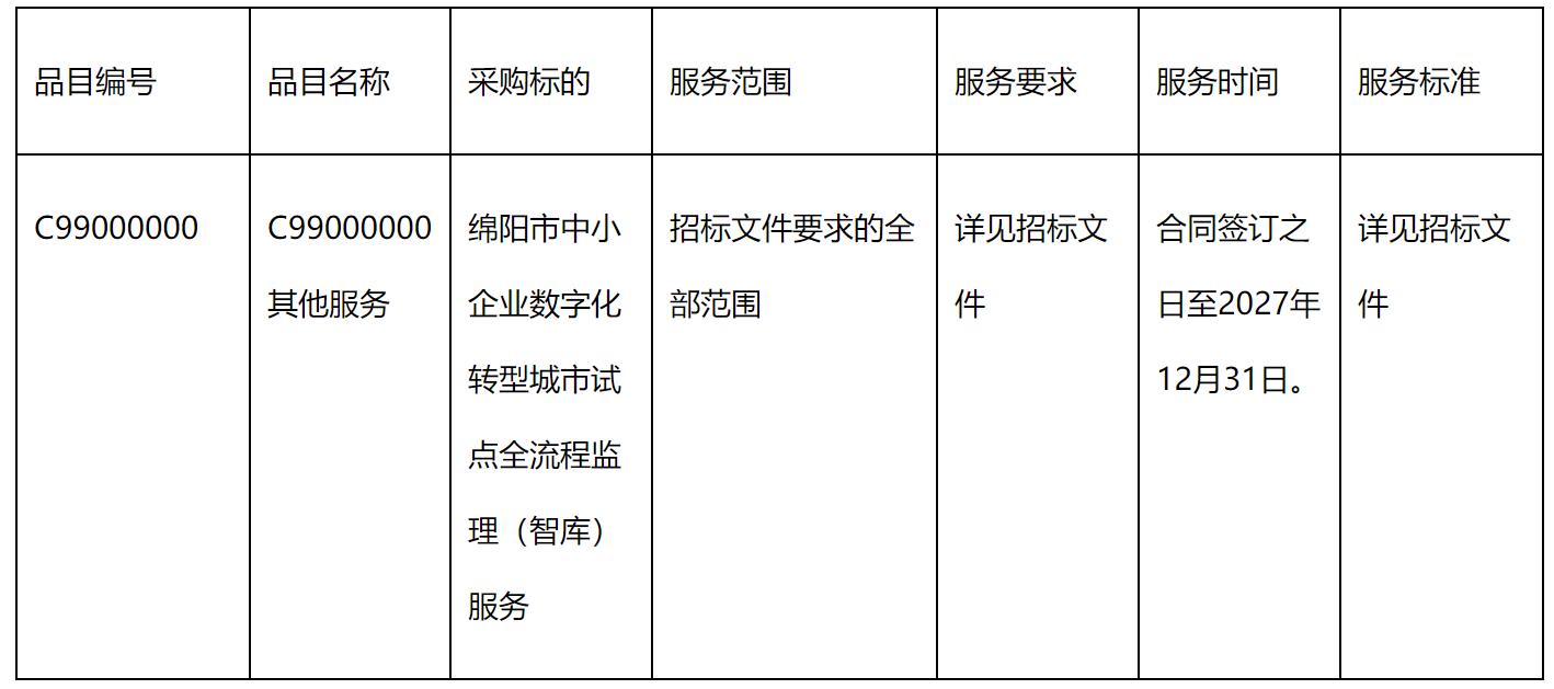 二、项目名称:绵阳市中小企业数字化转型城市试点全流程监理(智库)服务