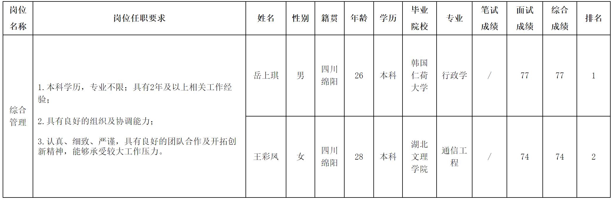 根据四川华丰科技股份有限公司发布的招聘公告及招聘相关规定,经面试等程序,现将测试成绩予以公示。