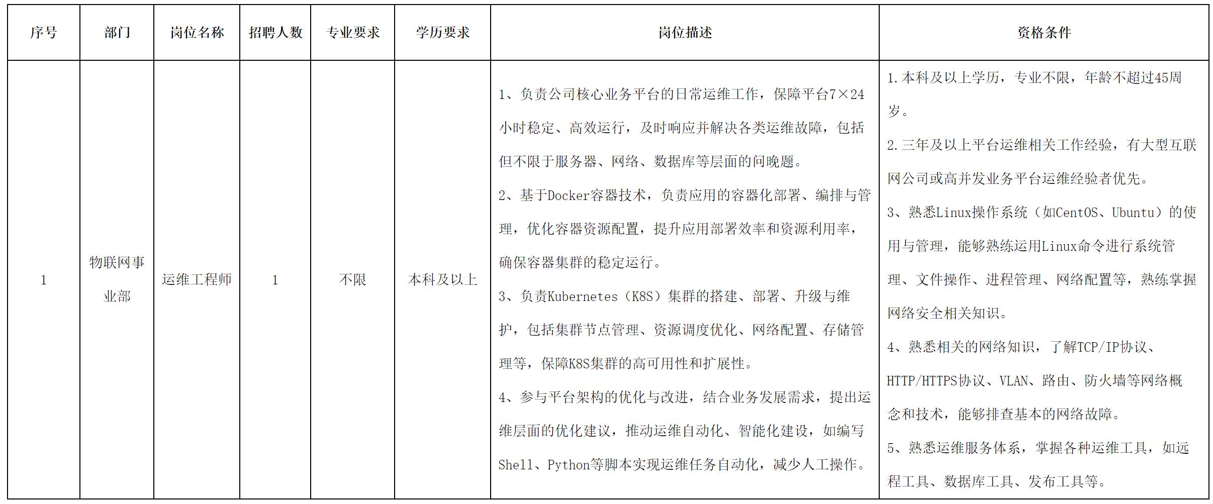 现因公司经营发展需要,现面向长虹控股集团内、外部诚聘运维工程师岗位人员,具体岗位招聘信息公告如下: