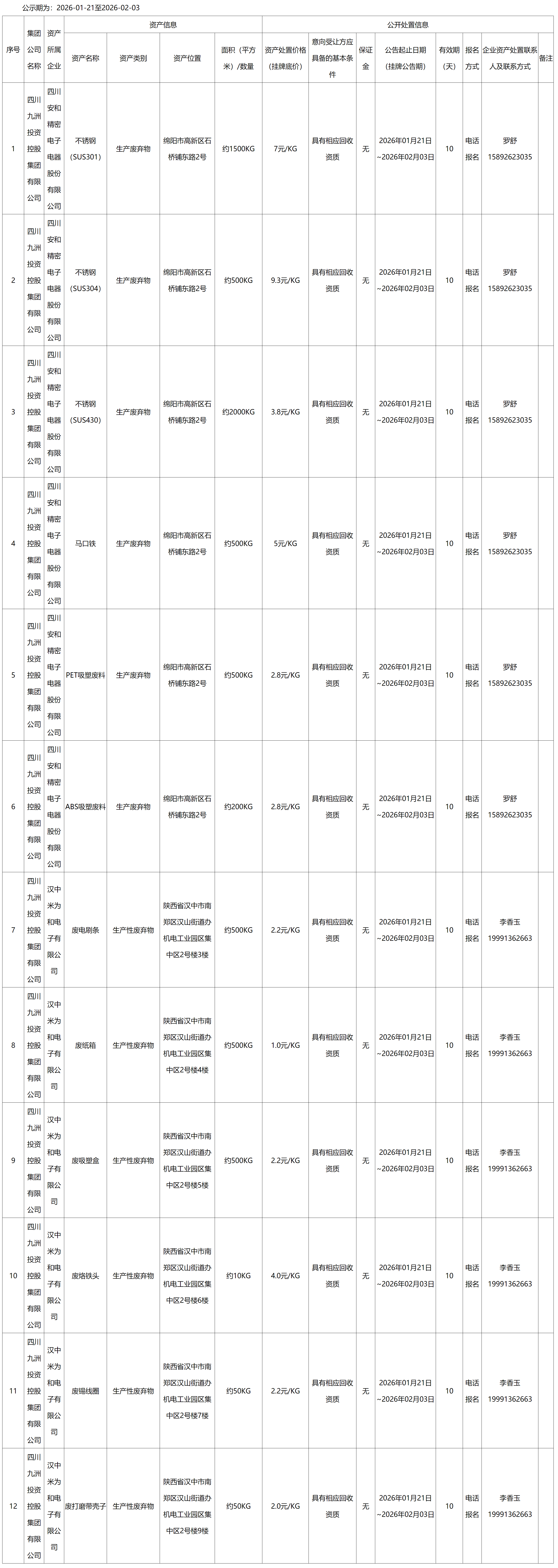 四川安和精密电子电器股份有限公司生产废弃物处置公告