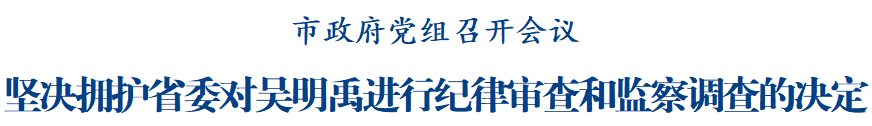会议指出,对吴明禹进行纪律审查和监察调查,是省委坚决贯彻落实党中央关于全面从严治党决策部署的具体行动和有力体现,充分彰显了省委推进党的自我革命、将反腐败斗争进行到底的坚定决心和坚强意志,释放了反腐败斗争无禁区、全覆盖、零容忍的强烈信号。市政府党组坚决拥护,将切实把思想和行动统一到党中央关于全面从严治党的部署要求上来,统一到省委和省纪委监委决定精神上来,以实际行动坚定拥护“两个确立”、坚决做到“两个维护”。