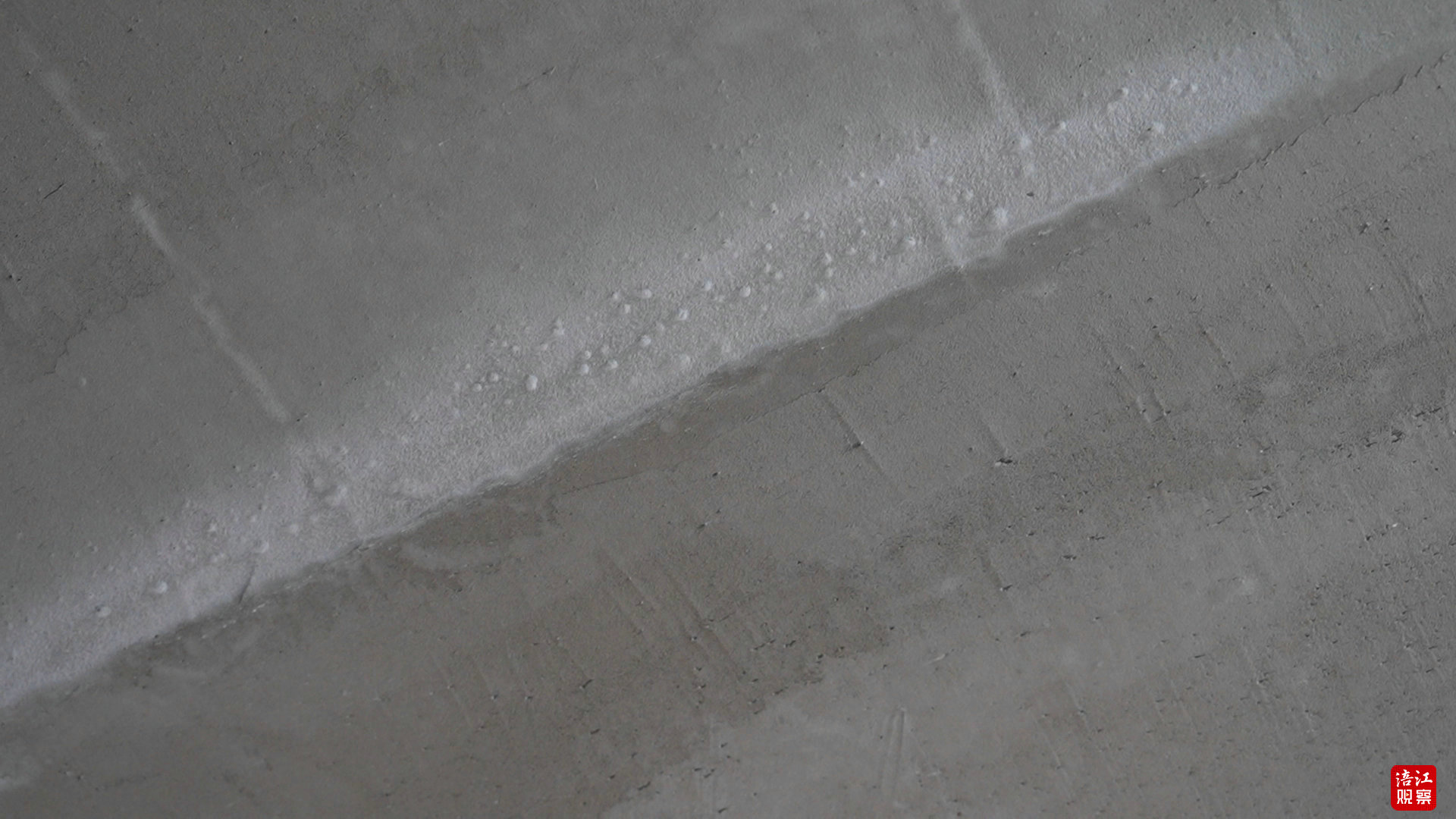 对于疑似“渗水”痕迹,廖相莹解释为施工过程中产生的“反碱”现象,不影响房屋使用安全。工作人员进场维护是为了恢复美观度,而非掩饰问题。