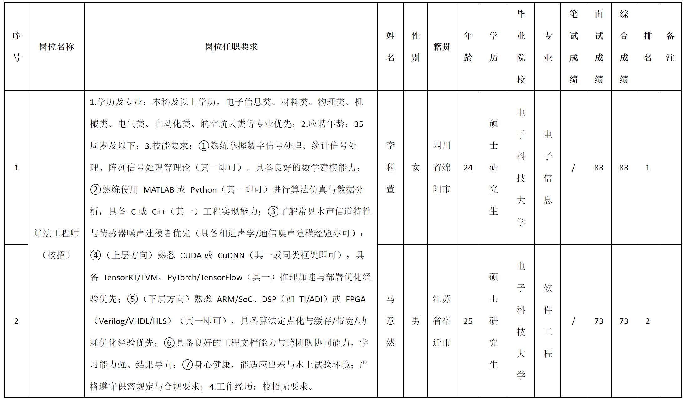 一、拟录用人员