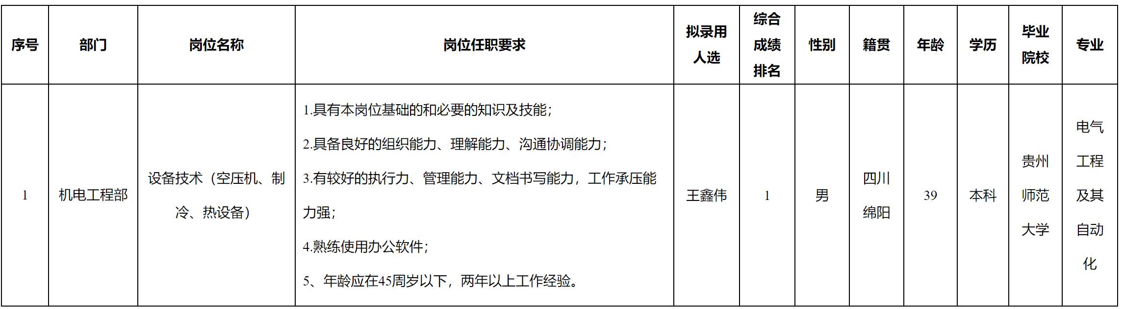 根据四川长虹电源股份有限公司发布的招聘公告及招聘相关规定,经测试、考察、体检等程序,拟录用王鑫伟同志到我司工作,现予以公示,具体情况如下: