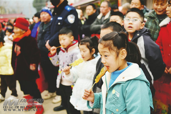 1月24日,梓潼文昌大集的非遗表演和特色美食,让孩子们既饱了眼福,又饱了口福。记者 刘晓东 摄