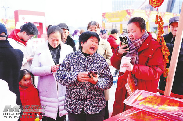 1月26日,涪城区吴家镇举办“腊香启岁·非遗贺春”冬日关爱活动。活动现场,书法爱好者挥毫泼墨,将一幅幅寓意吉祥的新春楹联、福字送到村民和游客手中。记者 尹秦 摄