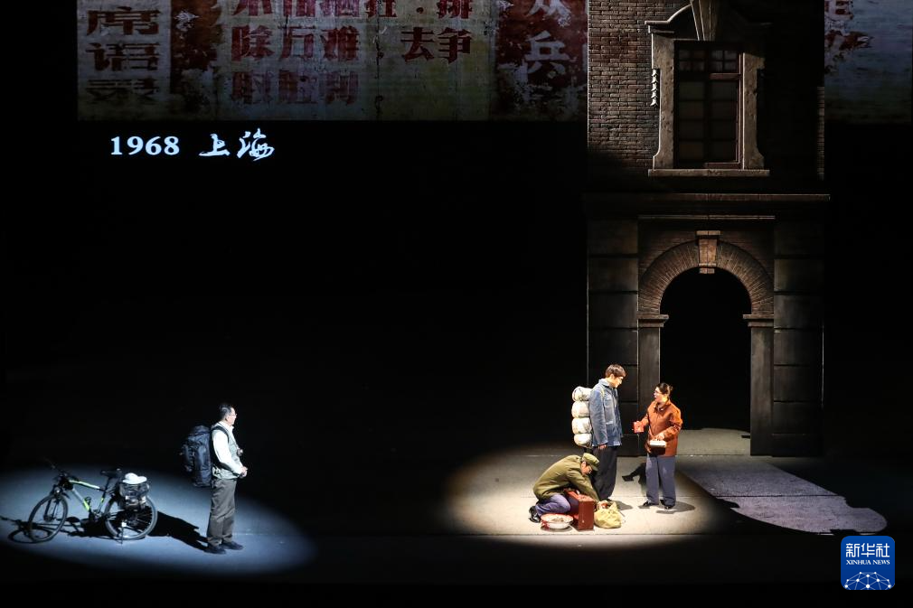 1月28日晚,在甘肃黄河剧院,甘肃省话剧院演员在话剧《青青的阿万仓》中表演。
