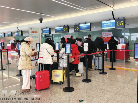 绵阳机场,旅客值机。 记者 唐舒琪 摄