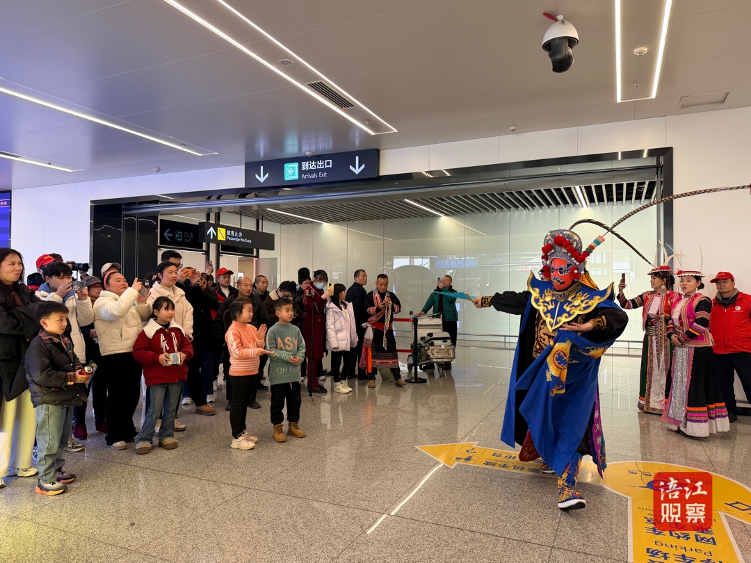 13时许,活动在热闹的快闪表演中拉开序幕。平武白马藏族歌手、北川羌族歌手相继登场,呈现浓郁的民族风情;川剧变脸表演引得现场旅客阵阵掌声。