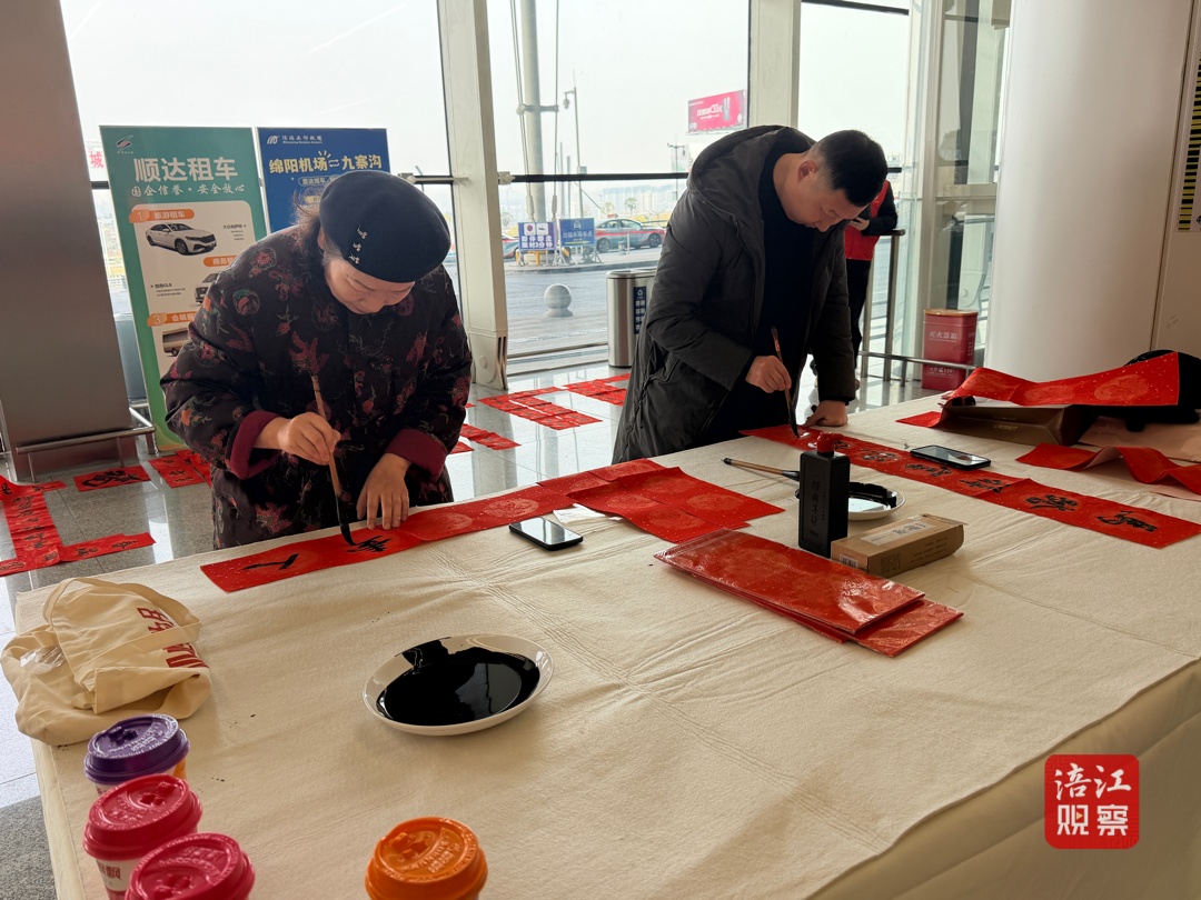 活动现场设有写春联、送祝福专区,书法爱好者及工作人员现场挥毫,将一幅幅充满年味的春联赠送给往来旅客,为大家带去新春的第一份吉祥与问候。