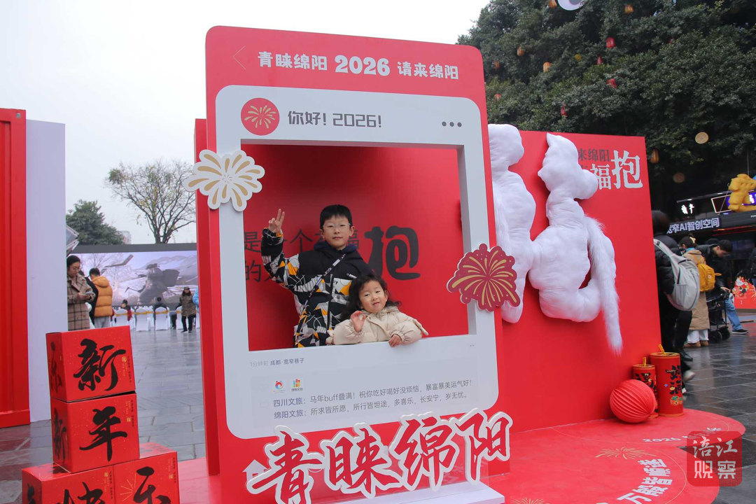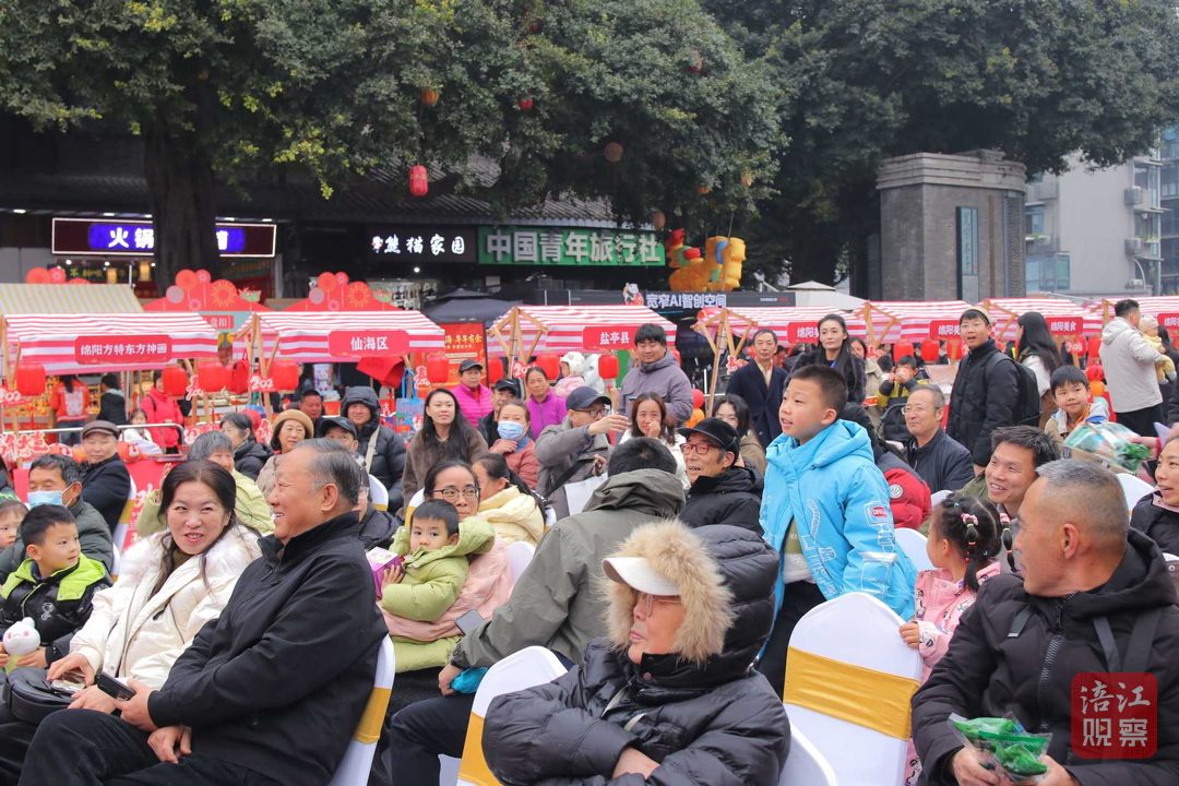 舞台区同样热闹非凡。随着主持人一声“青睐绵阳·欢喜过年,我们宽窄巷子里见!”文艺演出正式拉开帷幕。歌舞、民俗表演轮番上阵,将“李白故里、诗意绵阳”的浪漫,“熊猫家园、生态绵阳”的灵动,“烟火绵阳、安逸绵阳”的温情一一呈现。