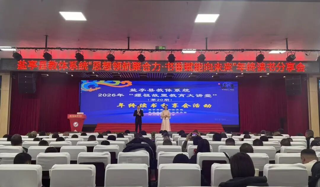 2026年1月31日,盐亭县教体系统在盐亭中学开展了以“思想领航聚合力·书香赋能向未来”为主题的2026年“嫘祖故里教育大讲堂”年终读书分享会活动。此次活动由盐亭县教育和体育局、盐亭县教育工会委员会主办,盐亭中学承办。