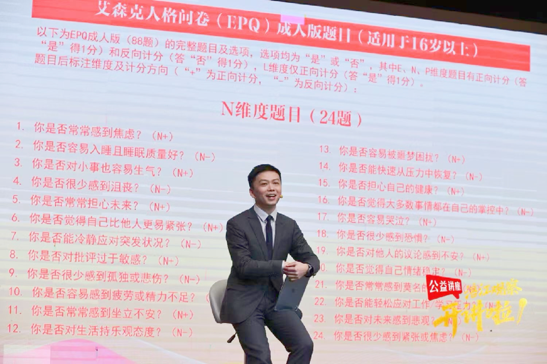 艾森克的人格问卷是用的比较多的一个测评,它分了四个维度,每个维度都有二十多道题,总共的这个问卷就有八十多道题。这样的评估跟那个图的评估相比,对于我们精神科医生来讲,我们会认为都不太可靠。比如这题问你是否担心自己的健康?我在做这个选项的时候,我可能会想,我勾选我担心自己的健康会不会被医生认为我有病,我就选什么,我就选不,我就选否。