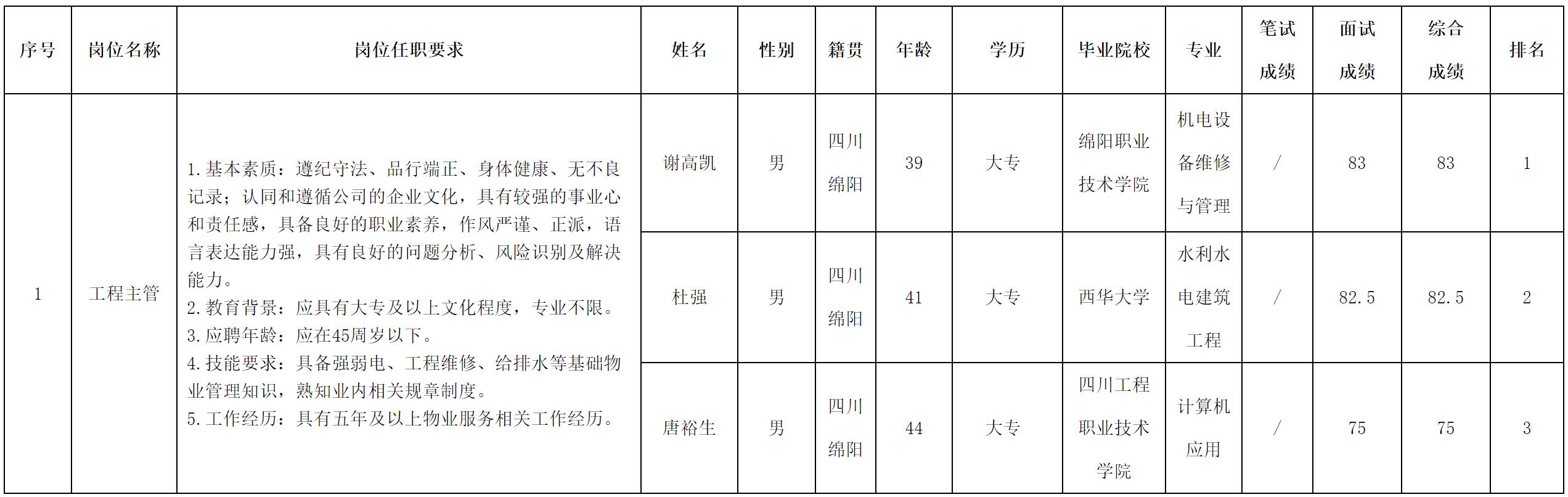 根据四川长虹物业服务有限责任公司绵阳分公司发布的招聘公告及招聘相关规定,现将测试成绩予以公示。
