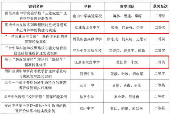 绵阳新闻网讯 近日,绵阳市2025年高考综合改革学校管理经验优秀案例评选结果揭晓,江油市太白中学申报的《用成长与发展系列课程赋能县域普通高中五育并举的构建与实施》《普通高中基于“最近发展区”理论的“踩线生”精准转化体系》两项成果双双获评优秀案例,充分彰显了该校在内涵发展与创新育人领域的扎实成效与鲜明特色。