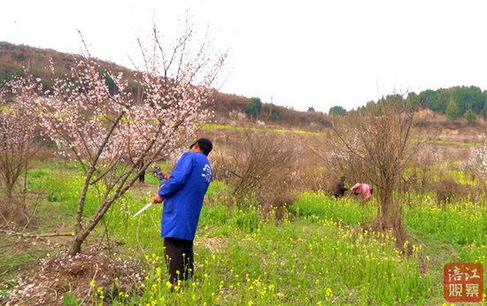 “修枝就是为了修去幼态枝,保证树枝当中有效枝的生长。不开花的、小的树枝就叫幼态枝,这些枝条消耗养分却不结果实,必须剪除。”务工村民杨中军指着一棵梅树示范道:“你看,下垂枝和内堂枝也要剪掉,这样果实才能充分进行光合作用,结得又大又好。”