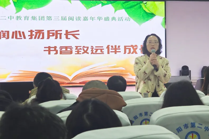 活动伊始,嘉利容发表致辞。她深刻阐释了此次活动的核心意义,指出其不仅是“扬长教育”理念下阅读立校、文化育人的集中展示,更是推动教育从“知识本位”向“生命本位”升华的关键实践。她期待阅读经验能转化为课堂智慧与教育洞察,唤醒师生潜能,让馥郁书香能最终成为全体二中人砥砺前行的不竭动力。
