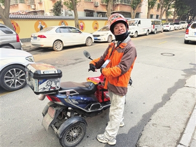 熊天宇出发送外卖。 记者 李春梅 摄