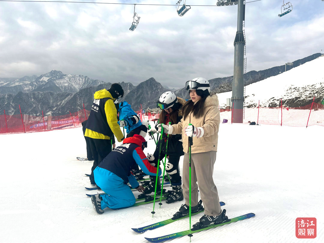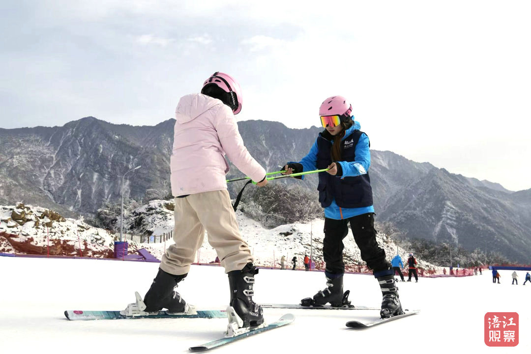 雪道上,三五成群的年轻人结伴滑行,用速度与欢笑重新定义年味。“以前过年就是在家吃吃喝喝,现在不一样了,滑雪又刺激又好玩,这才是我们年轻人该有的春节!”来自平武黄羊乡的杨超,一人带着四个孩子,在雪地里尽情释放活力。同乡的刘艳特地购置了一身亮色滑雪服,“玩要玩得尽兴,也要穿得够‘出片’。”她说。