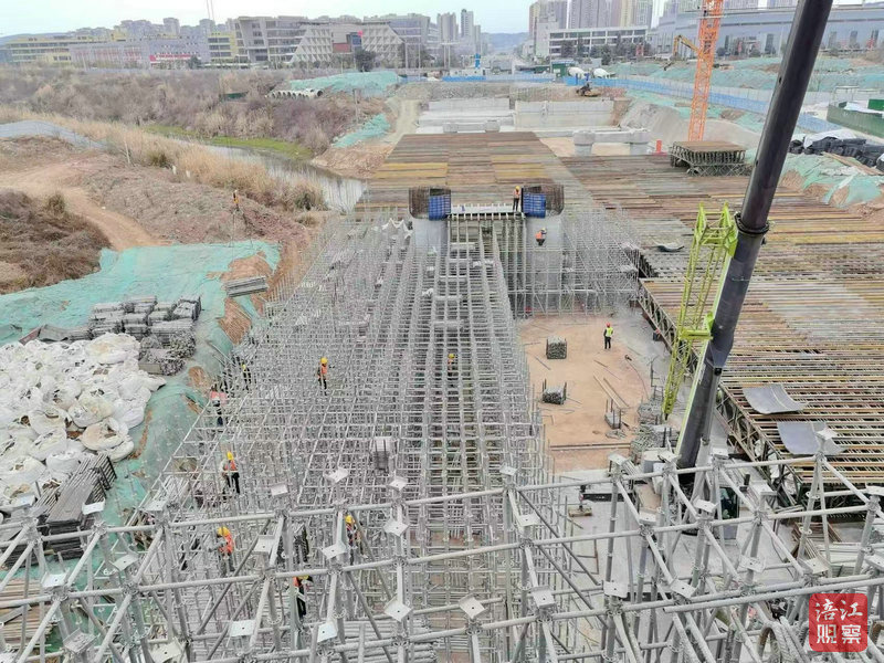 据悉,此段将宽约30米的道路改建为47米后,将具备双向八车道通行能力,完工后将成为城南片区又一条主干道路。作为项目重要节点,新建的双向六车道跨木龙河大桥也正加速推进。据介绍,目前大桥第二联已完成浇筑,正在搭设主跨支架,预计5月主体完工。
