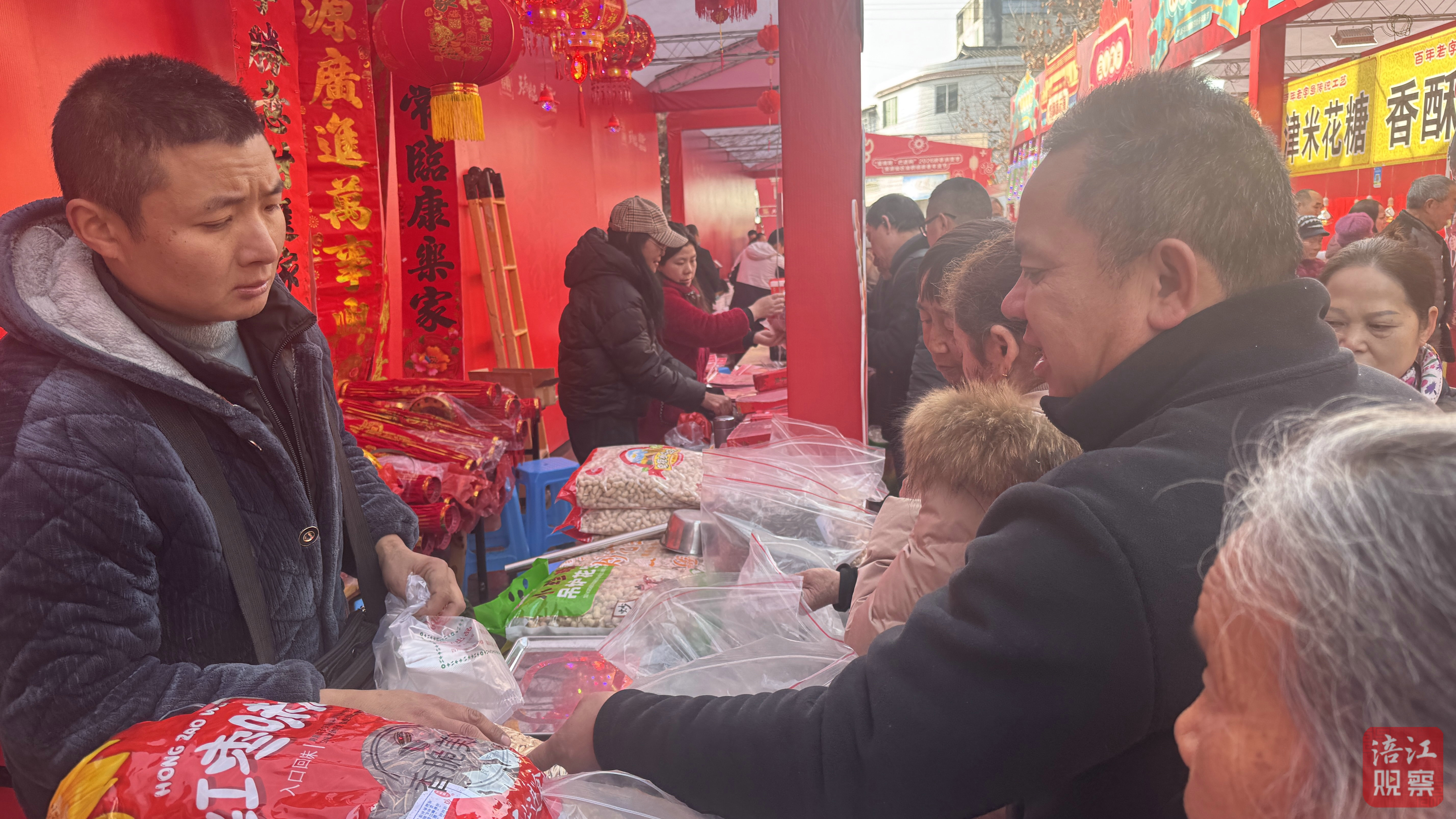 集市上,红纸金字的春联与福字交相辉映,铺展出一道温暖的风景;刚出笼的米糕热气袅袅,芝麻烧饼金黄酥脆,各式馅饼香气四溢;糖果摊旁,酥糖、奶糖、沙琪玛备受欢迎。欢声笑语中,人人手提满满的年货,空气中交织着糖香与腊味,将春节的温馨愈酿愈浓。