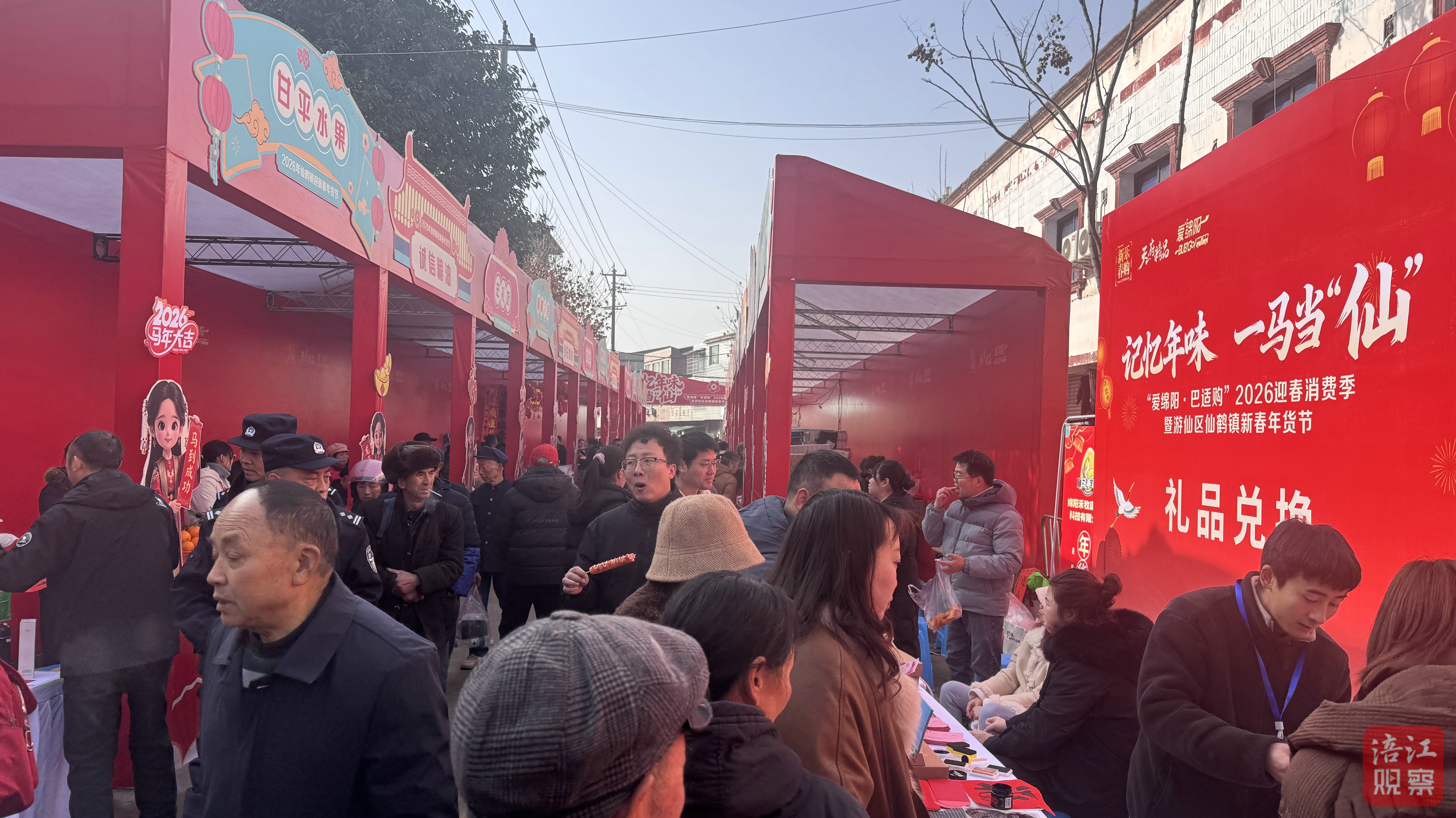 2月10日,腊月二十三小年,游仙区仙鹤镇场镇街道上人头攒动,“爱绵阳・巴适购”2026迎春消费季暨仙鹤镇新春年货节正式拉开帷幕。一张张笑脸映着浓浓的年味儿,一场以“惠民”为核心的新春盛会,让小年格外热闹。