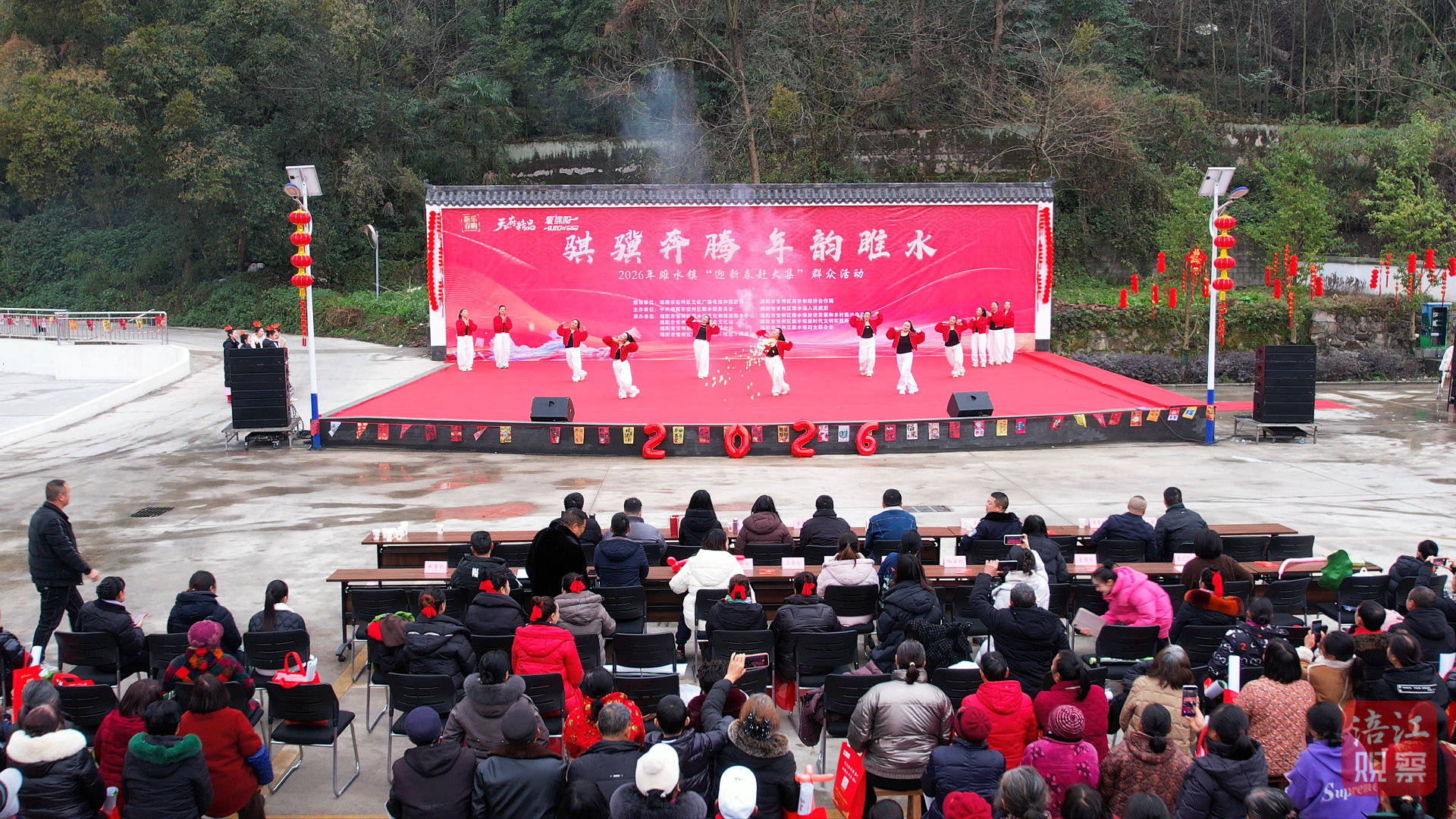 在盐亭县黄甸镇,犀牛广场上锣鼓喧天、人声鼎沸,“乡村大集嘉年华,龙腾马跃庆新春”2026年春节主题文化活动在此拉开帷幕。