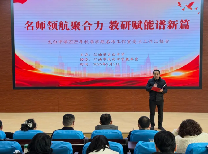 绵阳新闻网讯 2月5日,江油市太白中学召开了以“名师领航聚合力 教研赋能谱新篇”为主题的2025年秋季学期名师工作室亮点工作汇报会。会议聚焦各科名师工作室建设成果,九大学科首席名师依次汇报亮点工作,会议由教科室主任余刚主持,全体教职员工参会。
