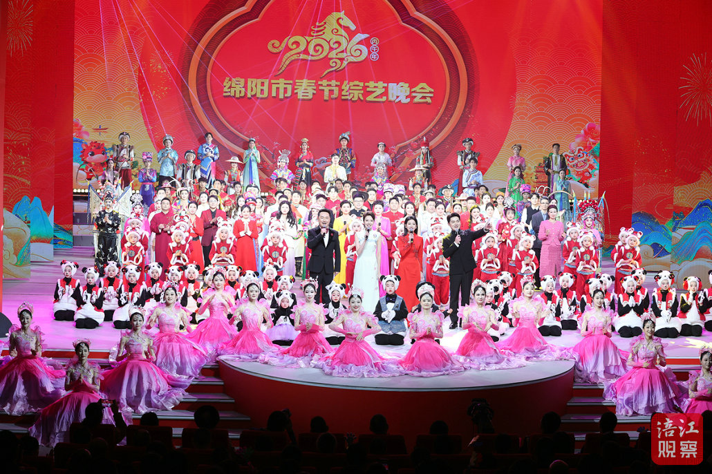 绵阳新闻网讯 2月10日晚,绵阳市2026春节综艺晚会在绵州大剧院举行。整场晚会以富有创意的节目编排、融合科技与人文的舞台呈现,以及浓郁绵阳特色,赢得社会各界好评。