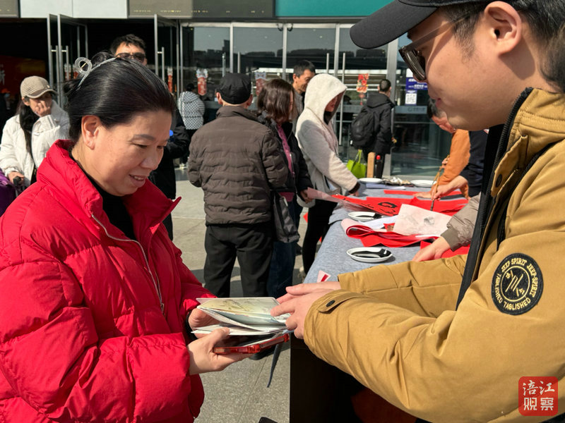 活动现场,书法家挥毫泼墨,将一副副寓意吉祥的春联和“福”字送到旅客手中。来自山东的游客陈琼接过手绘的绵阳游览地图,仔细翻阅后表示:“这份地图太贴心了,我会按着上面的推荐去逛逛绵阳的美景,尝尝绵阳的美食。”他一边翻看地图,一边计划着春节假期的行程。