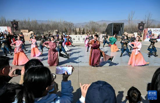2月13日,游客在银川市西夏陵景区观看《西夏乐集》。
