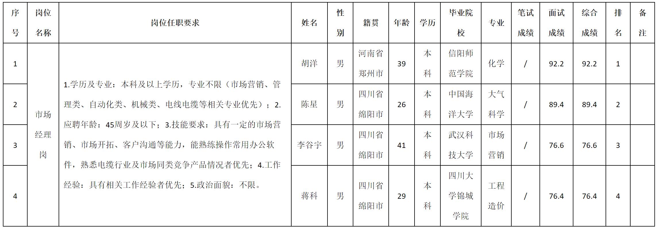 根据四川九洲线缆有限责任公司发布的招聘公告及招聘相关规定,现将测试成绩予以公示。