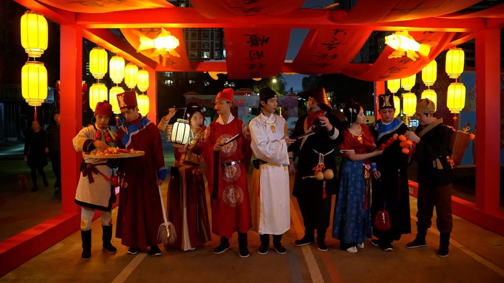 夜游锦江景区,NPC和游客一同贺新春。