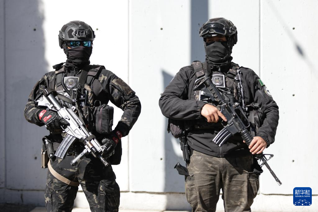 2月23日,在墨西哥首都墨西哥城,安全人员在街头执勤。新华社发(弗朗西斯科·卡涅多摄)