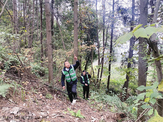 跟着老赵的脚步,记者走进他的日常责任区:覆盖大荍村、红砖岭村和东林社区的山林,总面积不小。每天清晨天不亮,他就揣着水壶、背着巡护包出门,翻山越岭、穿林越沟,“三护两防一报告”的职责,被他践行得扎扎实实:保护林地林木、守护野生动植物,严防林火林害,发现异常第一时间通过手持移动终端上报应急监控平台。