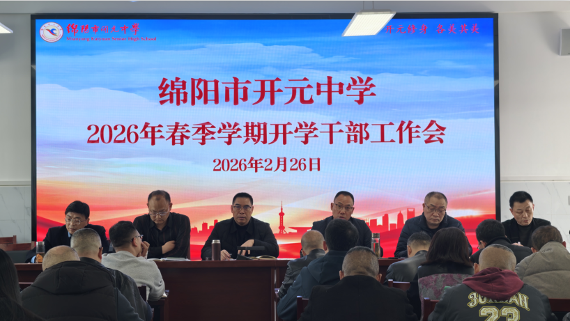 为了确保2026年春季开学各项工作平稳、有序、高效推进,明确新学期工作方向,凝聚管理共识,2月26日下午,绵阳市开元中学召开了以“凝心聚力启新程 笃行实干谋发展”为主题的2026年春开学干部工作会。该校领导班子成员及全体中层干部参会,会议全面部署新学期各项重点工作,为新学期学校高质量发展谋篇布局。会议由党委副书记、校长敬正雄主持。