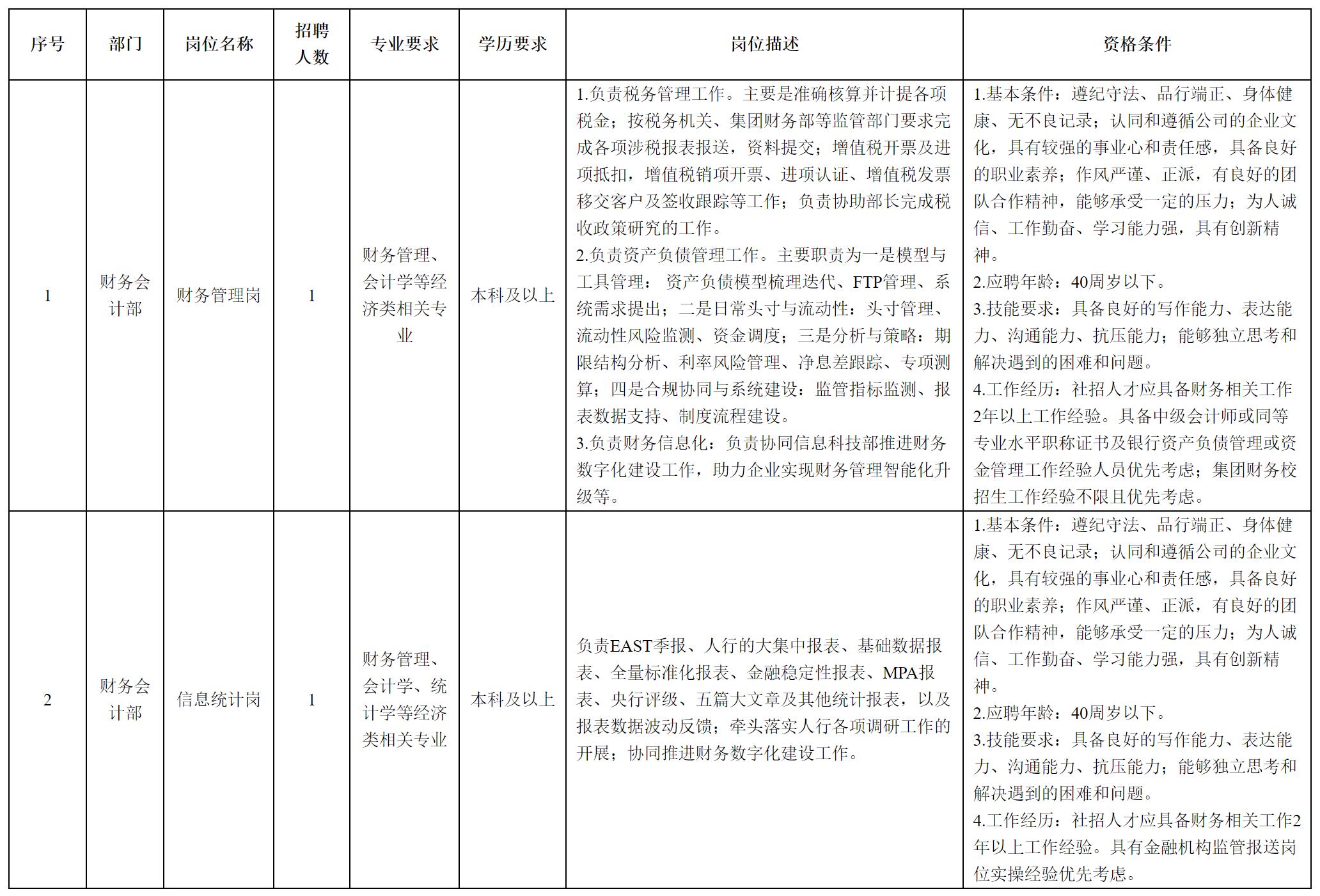 现因经营发展需要,公开招聘财务管理岗、信息统计岗等岗位: