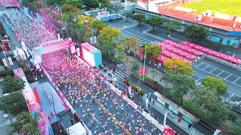 活动当天,还没起跑,主会场就已经人气拉满。“肥肠宝贝”热舞、街舞串烧、活力热身操轮番上演,最震撼的当属万人齐诵《静夜思》,千年诗句与现代奔跑撞个满怀,国风氛围直接拉满。7时30分,随着一声令下,全马、半马选手如潮水般冲出起跑线。