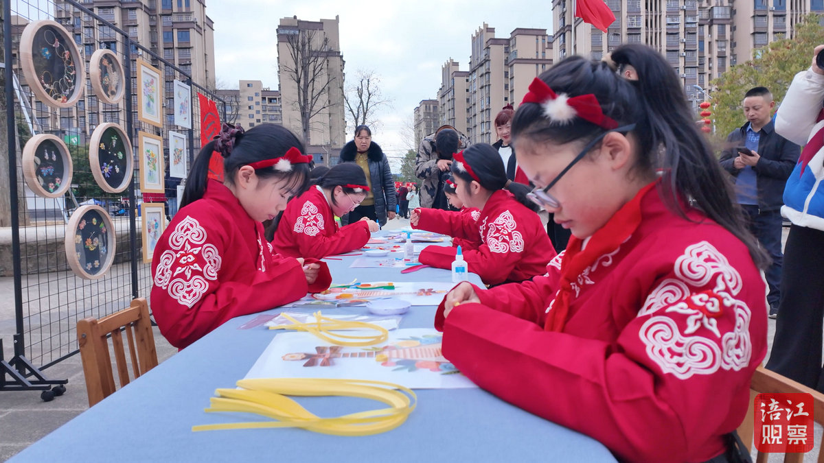 在衍纸艺术展示区,来自界牌小学的孩子们通过卷、粘、塑等手法,将普通彩纸制作成栩栩如生的动物造型。