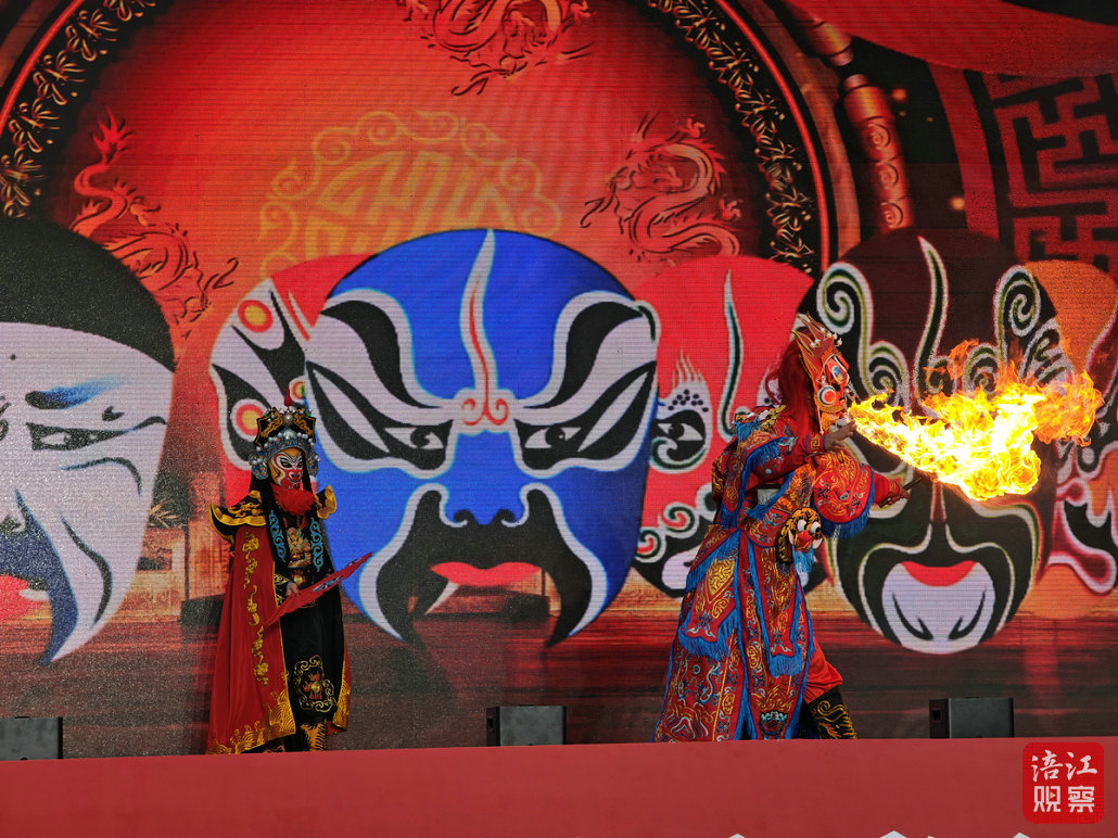 巡游队伍抵达如意广场后,文艺汇演拉开帷幕,歌曲、舞蹈、魔术、器乐演奏等节目轮番上演,美猴王互动、吐火绝技、舞蹈《凤鸣朝阳》等精彩节目引得现场掌声不断。