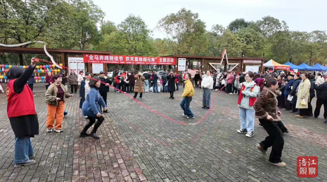 在界牌镇拥军广场,猜灯谜、投壶、踢毽子、夹元宵、投乒乓等互动体验活动同步开展。市民手持“欢乐卡”,通过完成游戏项目集齐印章,成功通关的市民可现场兑换红包和生活用品。