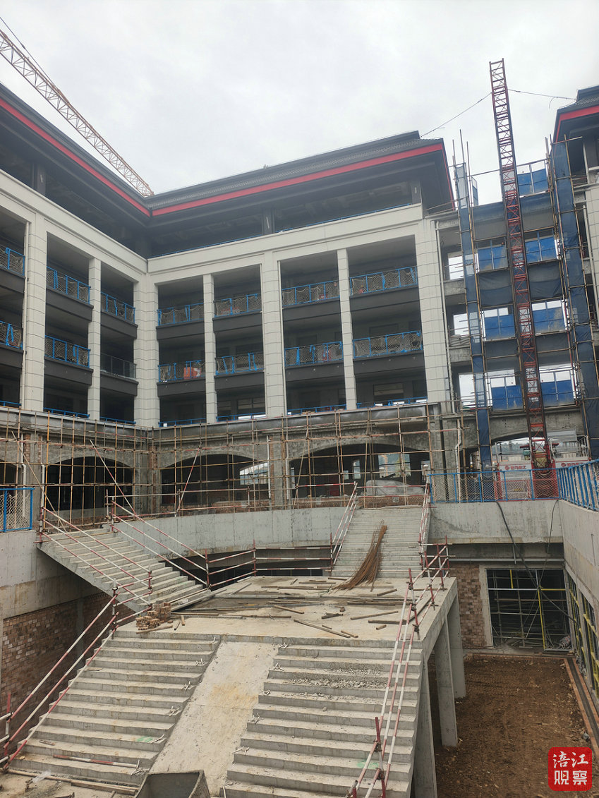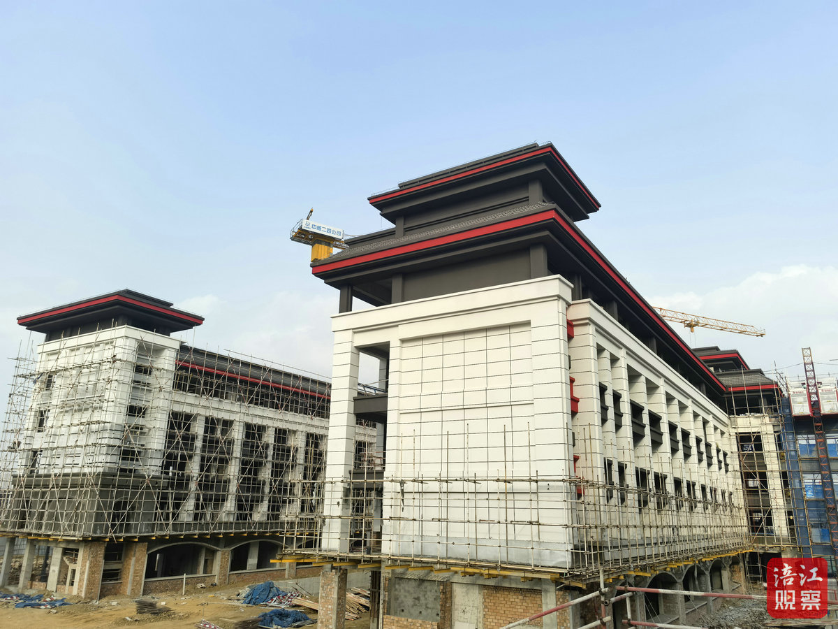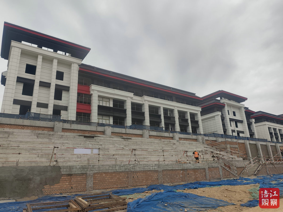 目前所有单体建筑主体结构封顶,正式转入室内外装饰装修、附属工程施工阶段。其中,教学楼外架已拆除完毕,装修进度完成50%;两栋教学楼及艺体楼正开展室内装修施工,进度达40%。记者在现场看到,一座现代化校园的轮廓已清晰呈现。