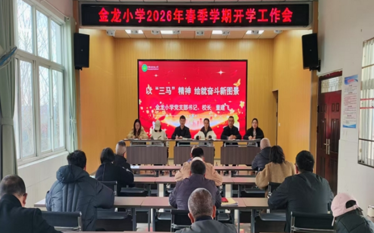 绵阳新闻网讯 为了深入贯彻新时代教育方针,凝聚发展共识,压实工作责任,2月28日,梓潼县金龙小学隆重召开了以“以‘三马’精神启新程 绘就教育发展新图景”为主题的2026年春季学期开学工作会。全体教职工凝心聚力、笃行实干,以昂扬姿态奔赴新学期教育新征程。