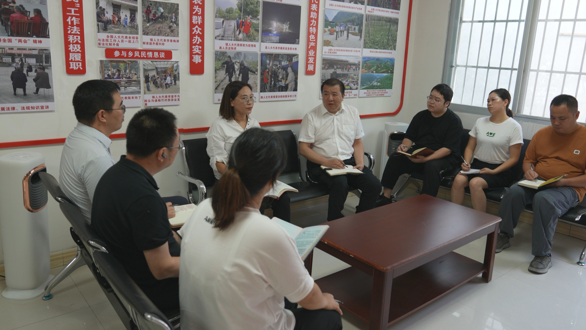 余绍容召集擂鼓镇五星片区的人大代表,讨论如何将农村的“土”产品搬上城里的餐桌,增加老百姓的收入。