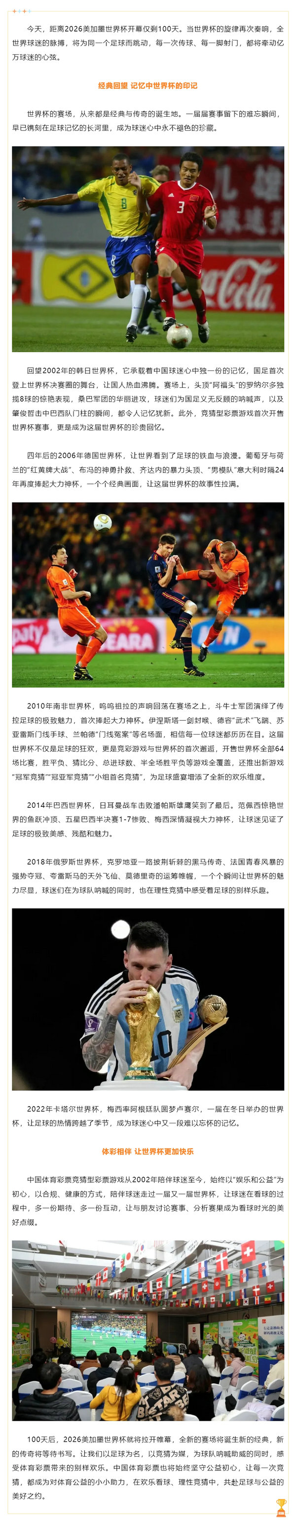 今天,距离2026美加墨世界杯开幕仅剩100天。当世界杯的旋律再次奏响,全世界球迷的脉搏,将为同一个足球而跳动,每一次传球、每一脚射门,都将牵动亿万球迷的心弦。